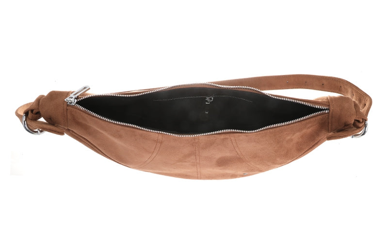 Ontdek de Roswell crossbody tas, een echte must-have voor wie stijl en functionaliteit wil combineren. Met zijn stoere halve maan vorm en zachte vegan suede afwerking is dit de perfecte tas voor dagelijks gebruik.